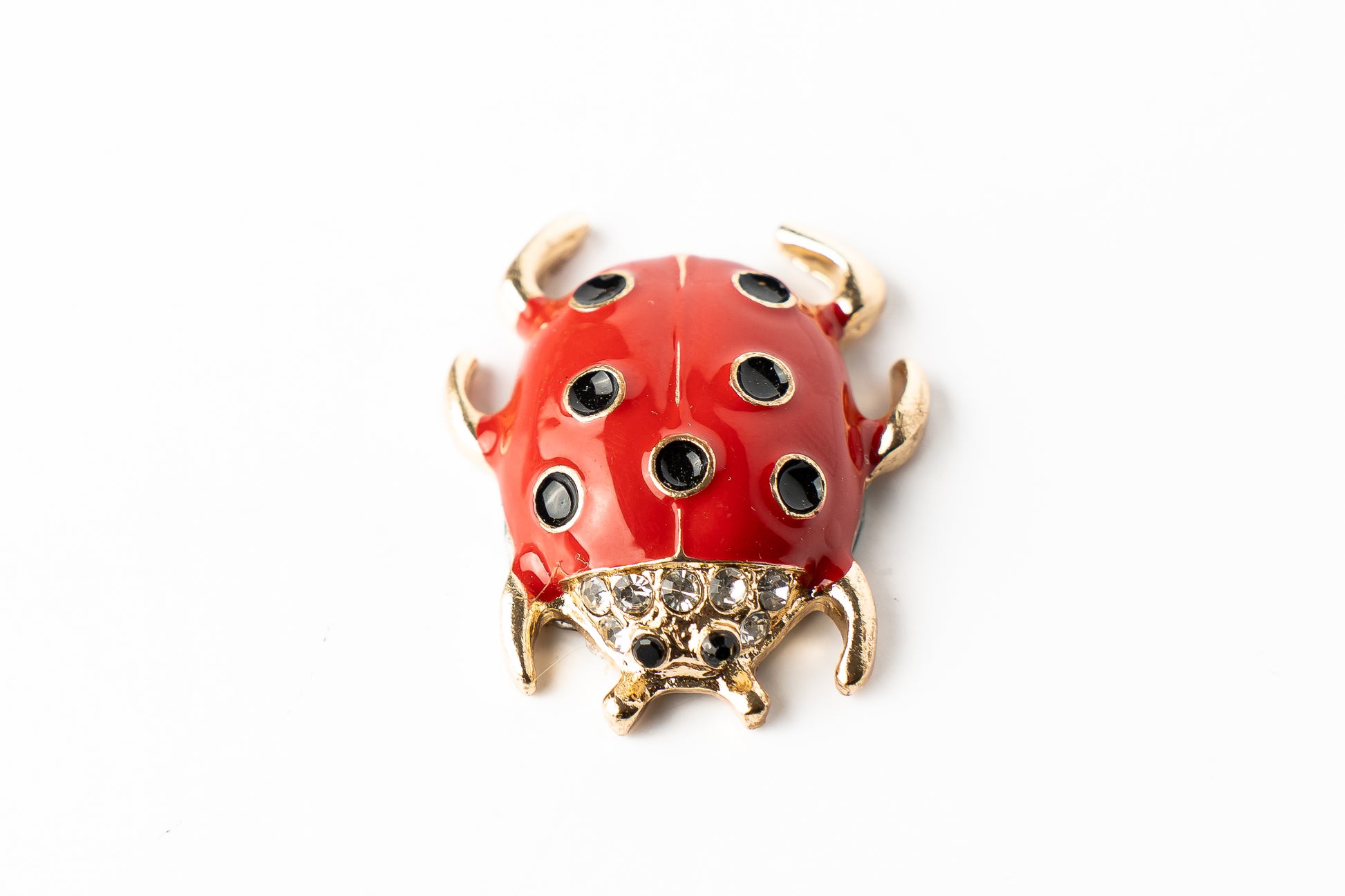 Con su diseño tradicional en rojo intenso y negros puntos esmaltados, esta mariquita es símbolo universal de buena suerte. Su acabado brillante y su forma redonda evocan inocencia, protección y un toque juguetón. Compatible con clips magnéticos, es un clásico que nunca falla.