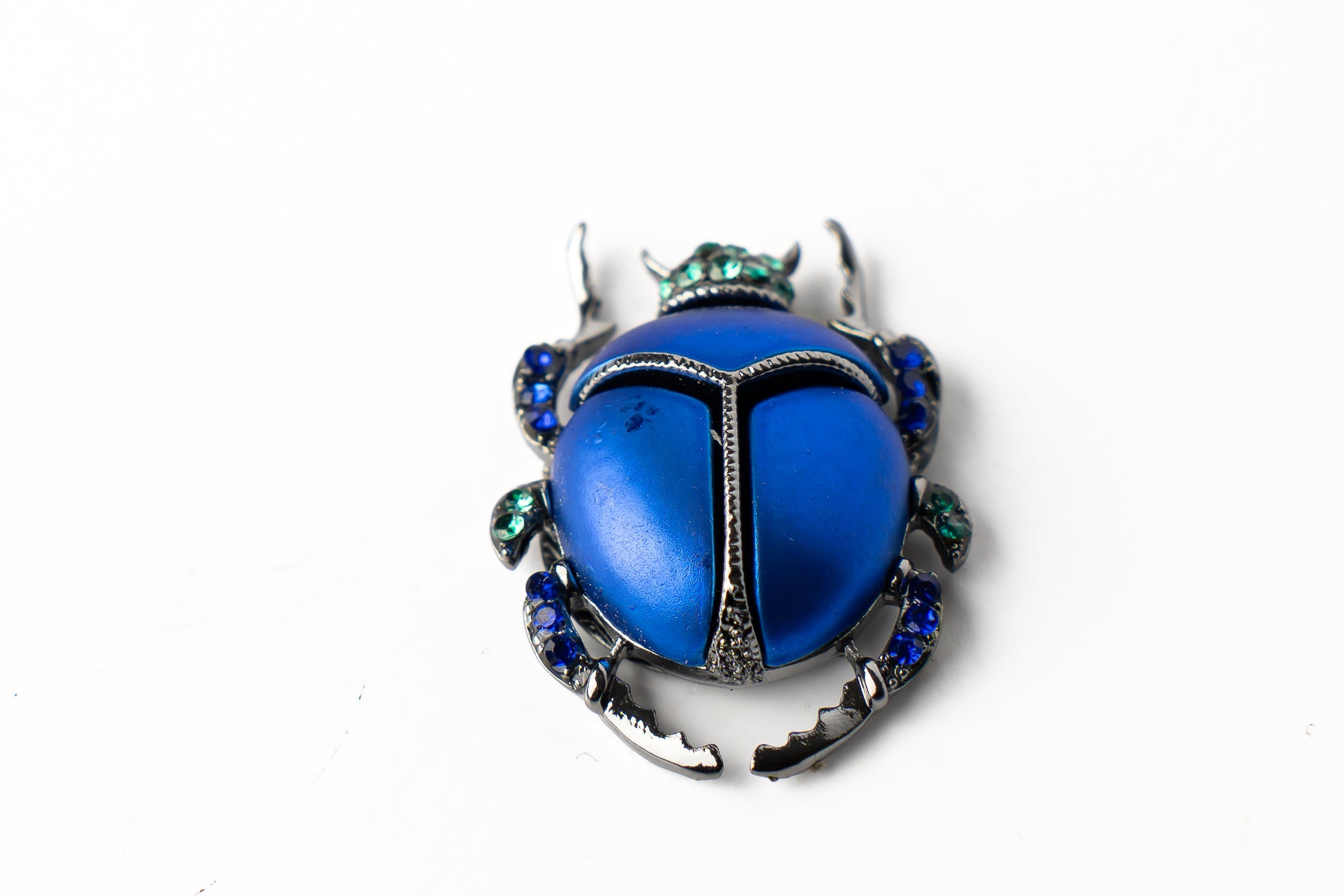 Este escarabajo azul cobalto con detalles en cristales aqua evoca majestuosidad y elegancia. Su cuerpo liso y vibrante contrasta con las incrustaciones brillantes en patas y cabeza, dándole un aire digno de realeza. Un marcador que impone presencia en el green. Compatible con clips magnéticos.